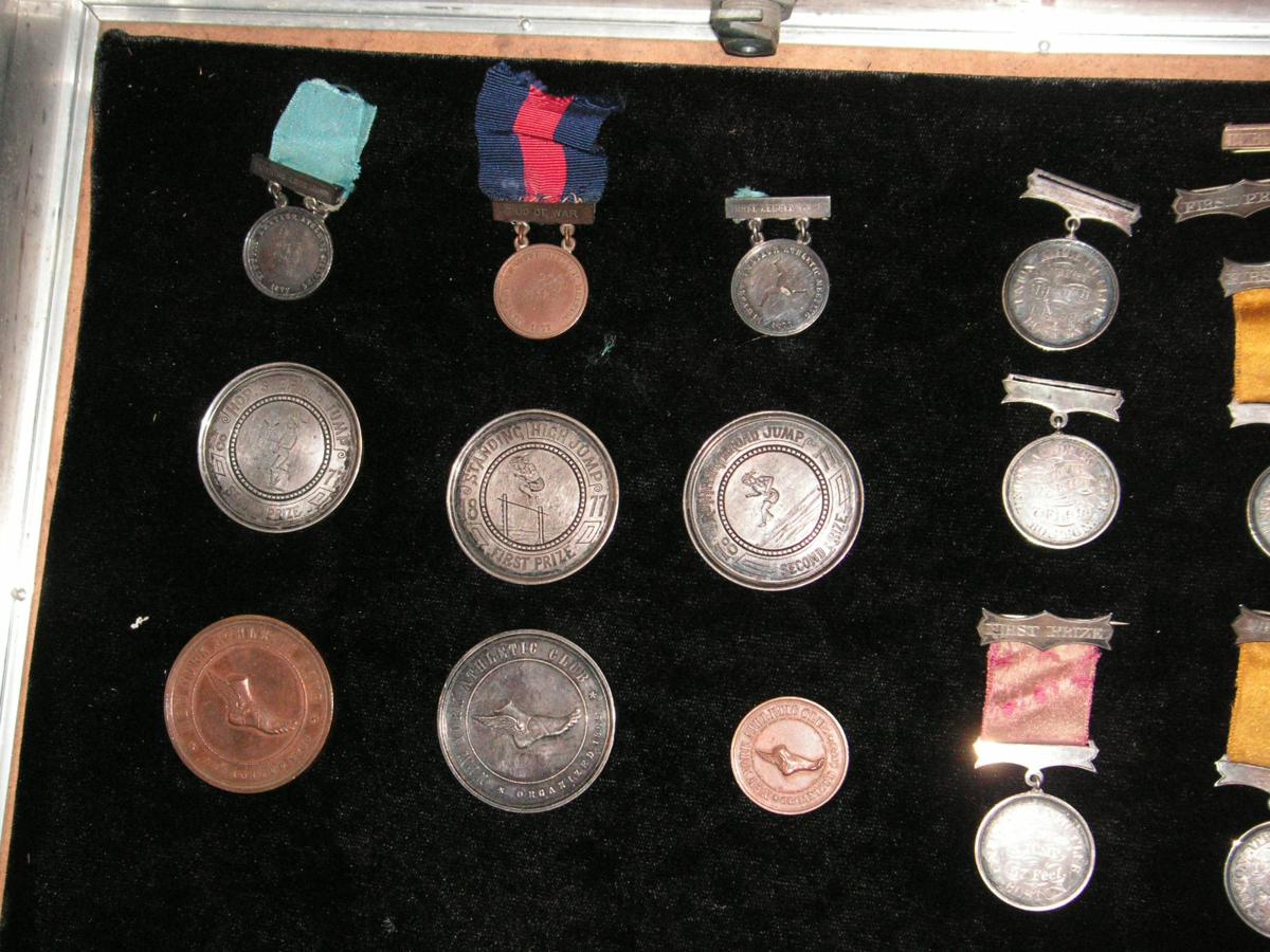early American track medals from the 1876 era, won by James G. Lathrop,