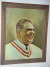 Painted by a professional artist, this incredible oil painting captures a lively, smiling Pop Warner, wearing a tie and classic V-neck sweater with the Stanford colors of red and white. This great painting