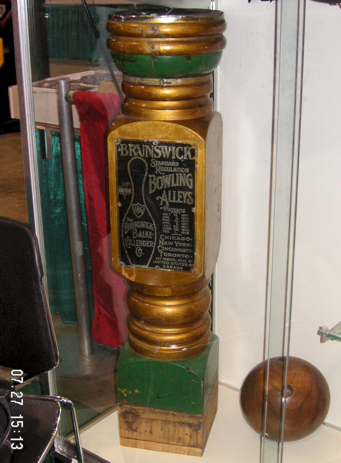 stand, out of a bowling alley. It was offered by Grey Flannel Auctions of Westhampton Beach New York, for $2,500.00. The guys in the booth told me the ball would return to the stand after a frame. They said it would be in an upcoming auction if it didn’t sell there.