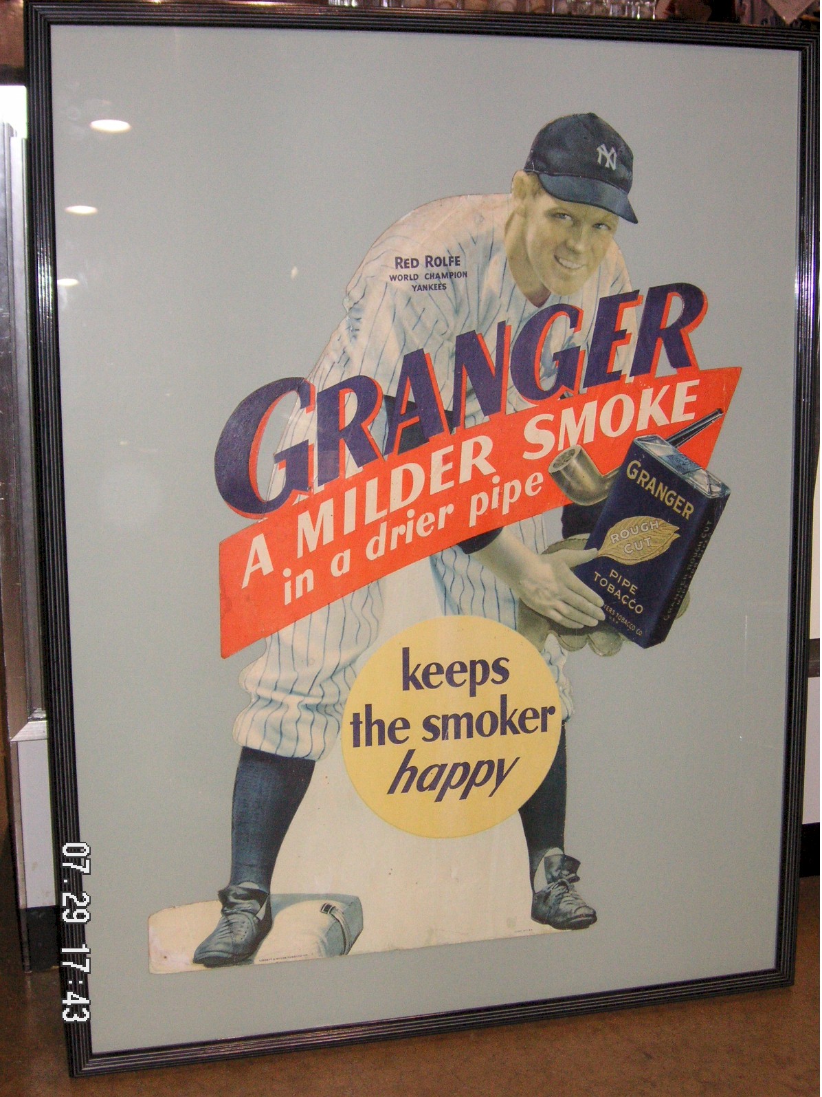 advertising sign featuring Red Rolfe, late 30’s-early 40’s, 34” tall by 26” wide, $2,700.00.