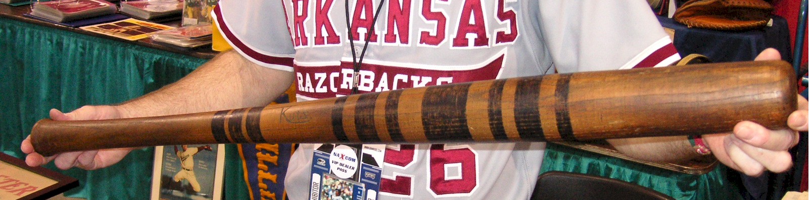 the next year at the 1996 National in Anaheim. That one I’ll never forget. I felt like Deep Throat in All the Presidents Men. Again on setup day, I stood there in the dimly lit parking garage with the $100.00 bill asking all the dealers walking by. Pretty soon this guy says, “Are you a cop?” I said no. He looks me over suspiciously, and says follow me. We walk over to this beater car, and he opens the trunk, and opens a box……he had a whole box of passes! You’re sure you’re not a cop he asked me again. No no I told him, I’m just a collector. So I start to pay him and he goes, no, $100.00 is too much, I can’t take $100.00, just give me $40.00. I said, are you sure? He says yeah. So I start looking for smaller bills, but didn’t have any. The guy says to me, well just get change and pay me later, I’ll be in there working. And he described where he’d be at and gave me a pass. So I eventually got some change and found him. He was guarding an exhibit of Barry Halper’s collection!