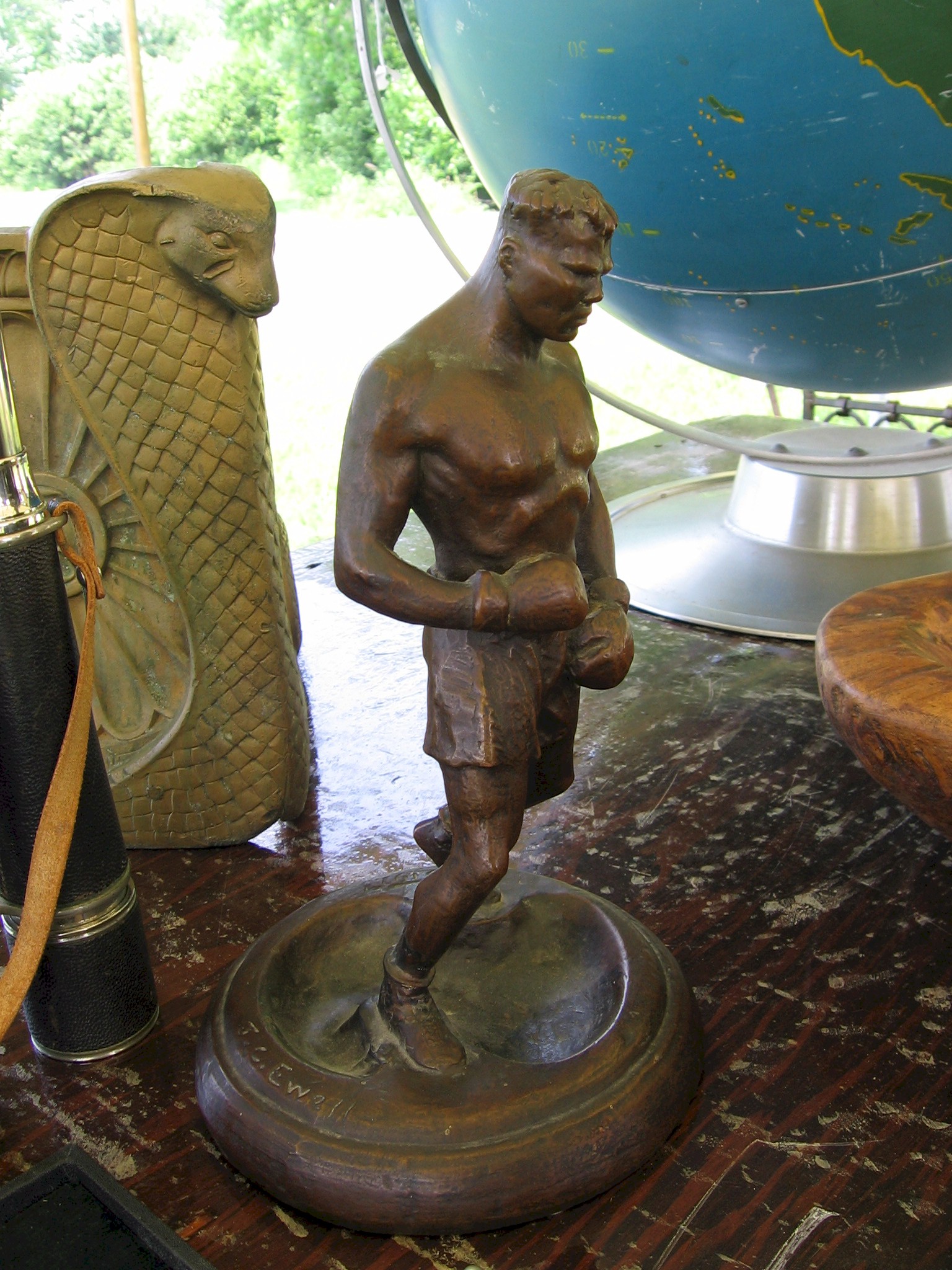 intriguing figural ashtray made of galvano, with a 12” tall figure of a black boxer. It was already sold when I saw it, price was $1,000.00. This was the first booth I came to as I started my coverage, and apparently I was so struck I forgot to photograph it. Coincidently, a buddy saw it for sale at Brimfield a month prior and emailed me a