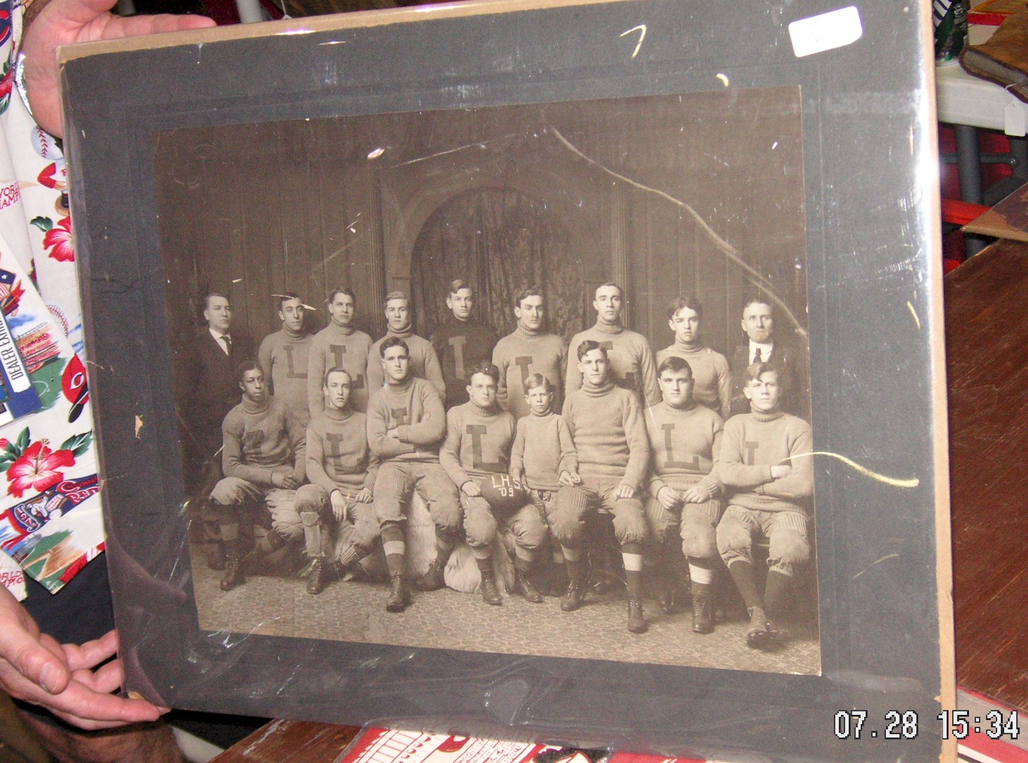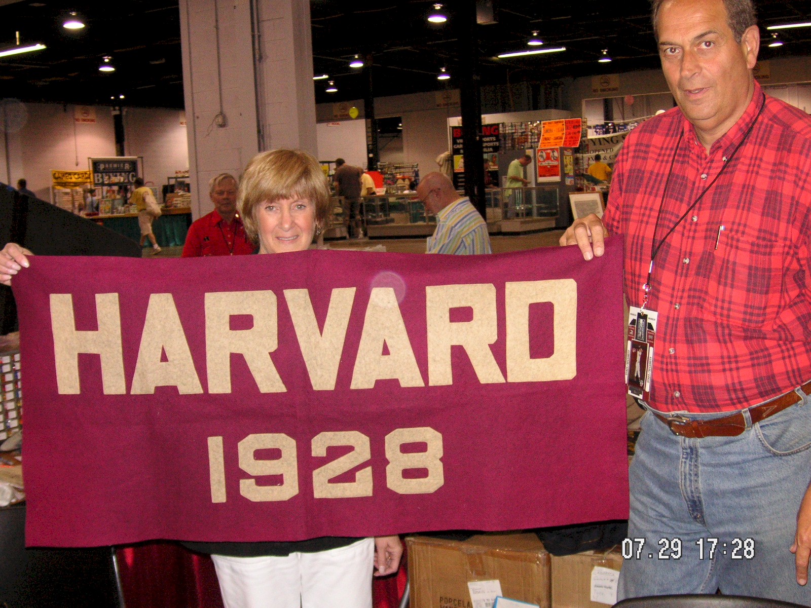 Denny Graziano from Franklin Park Illinois had a very nice and large, c1930 colorized framed photo of Hialeah Park Race Track, 29 ¼” wide by 7 ¾” tall, $295.00. Barry Sanders from Atlanta had a 1928 felt Harvard banner, 47” wide by 22” tall, $100.00.
