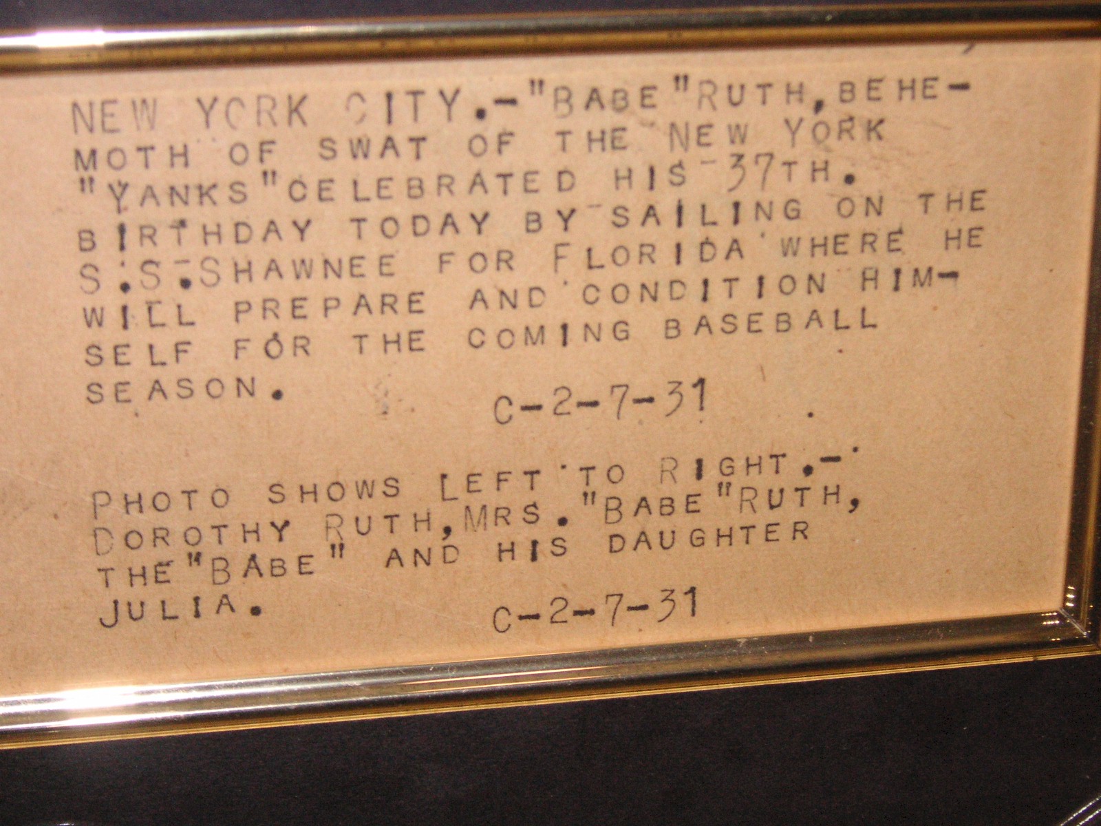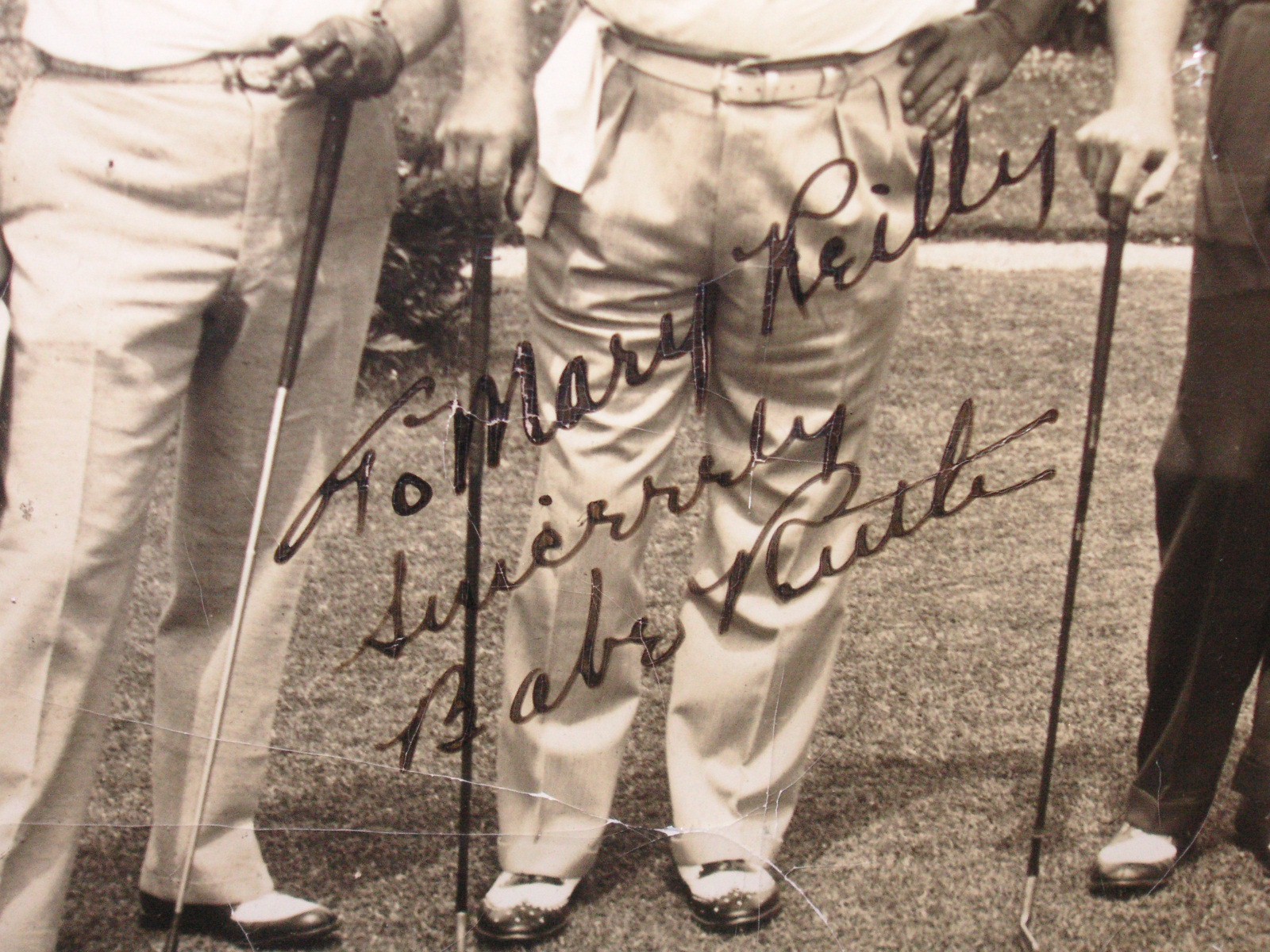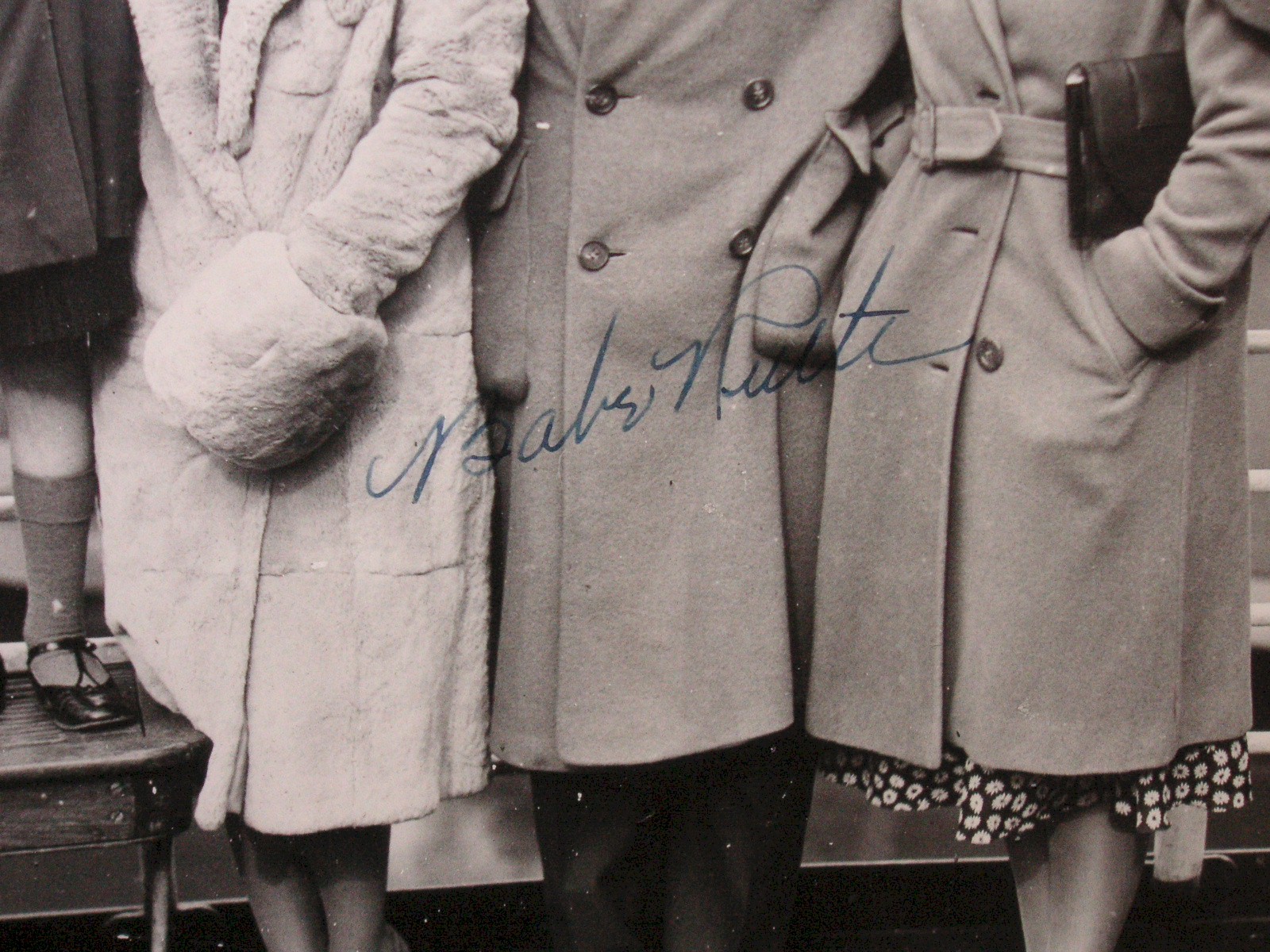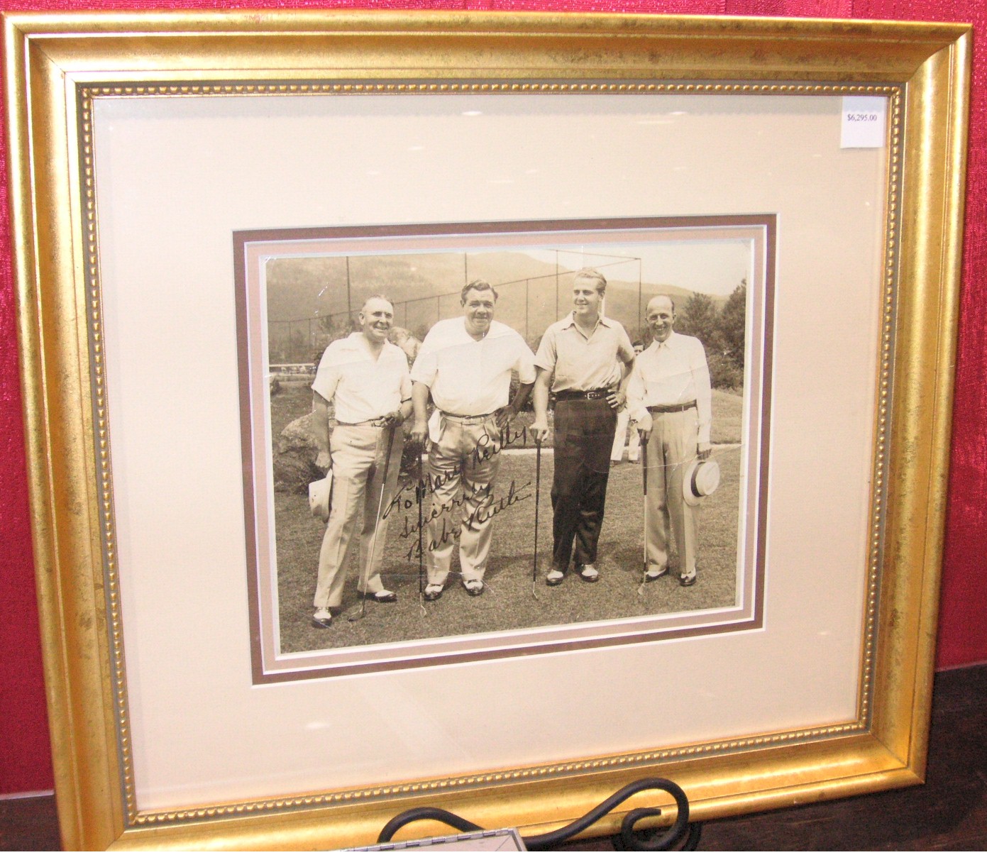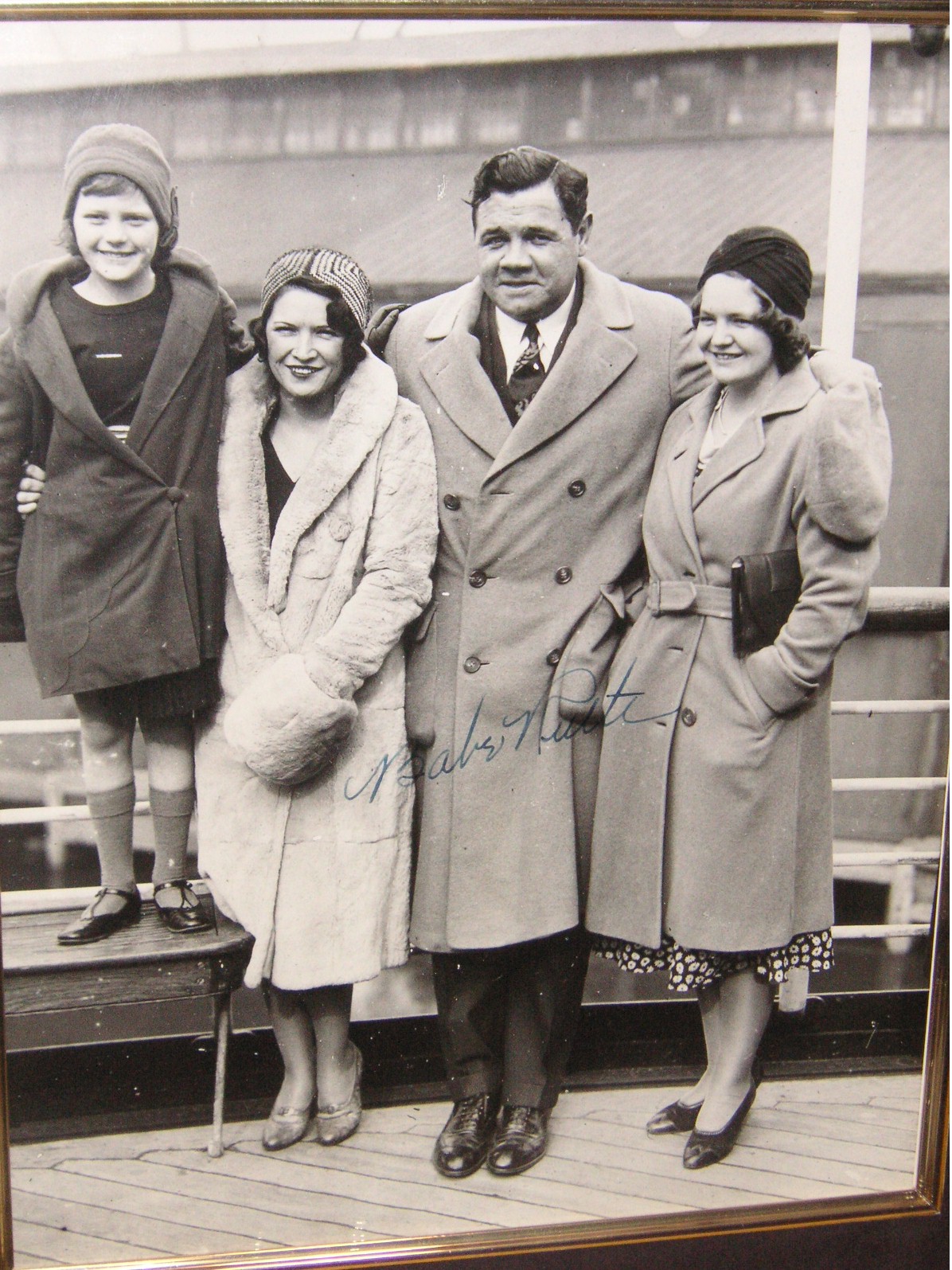Kevin Keating of QualityAutographs.com, from Alexandria Virginia had two signed Babe Ruth photos. One was of the babe posing with golf club in hand, wearing golf shoes, standing with four men, signed: To Mary Reilly sincerely Babe Ruth, 9 ½” wide by 7 ½” tall - inside mat, $6,295.00. The other one was a lot more interesting. It showed Ruth posing for a photo with his family on or near a ship on his 37th birthday. He looks more like 47 in the photo. Some kind of typed explanation of the scene was mated with the photo which indicated who was who. Left to right was his daughter Dorothy, his wife, him, and his daughter Julia. The photo was signed: Babe Ruth, 9 ½” tall by 7 ½” wide – inside mat, $4,950.00.