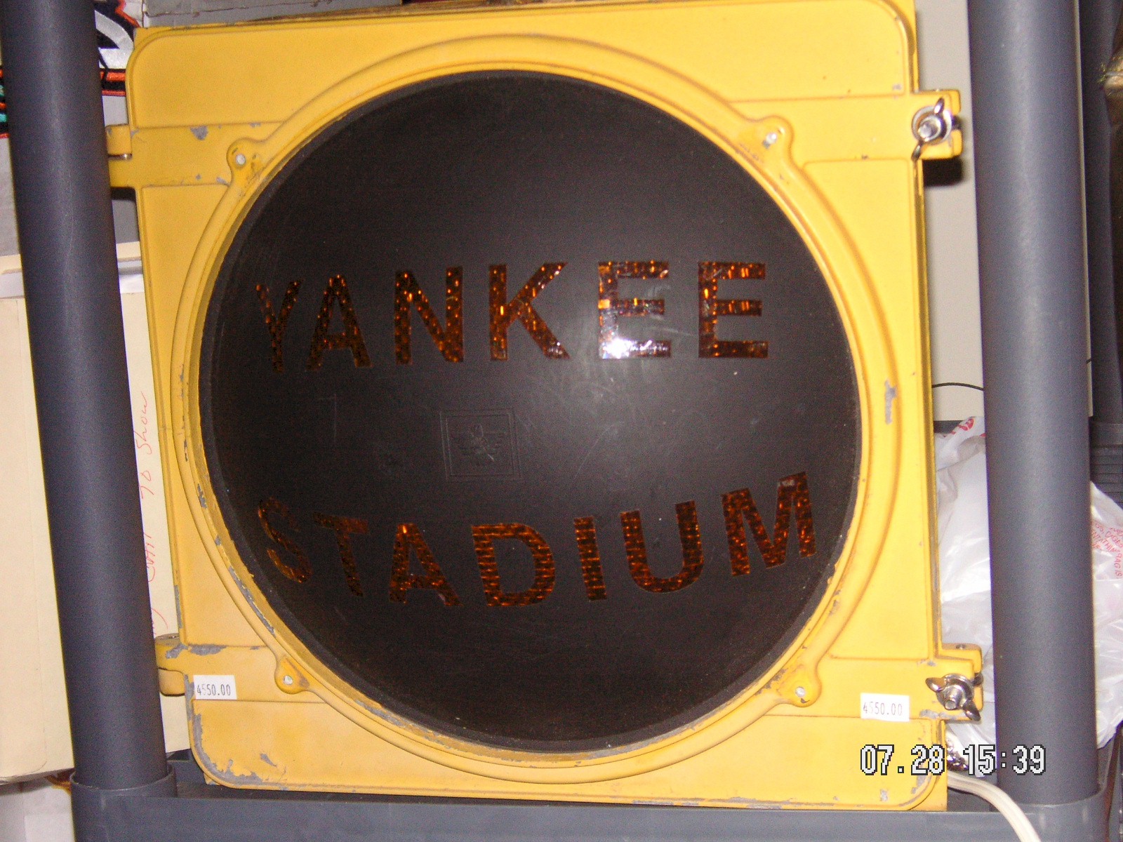 Bob Wetzel of B&B Baseball Cards from Maple Shade New Jersey had a very cool street light that said Yankee Stadium when lit. Bob said these lights were on corners in front of the stadium, 13” tall by 13” wide by 6” deep, $4,500.00. Bob couldn’t remember what color the light was when turned on, but that it didn’t blink. Had it been lit up at the convention, it might have sold before I saw it.