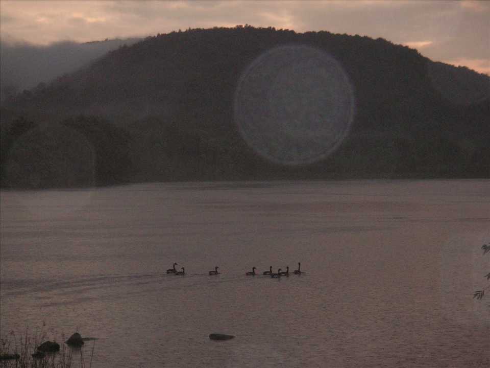 a group of geese were tranquilly paddling out into the lake...It seemed