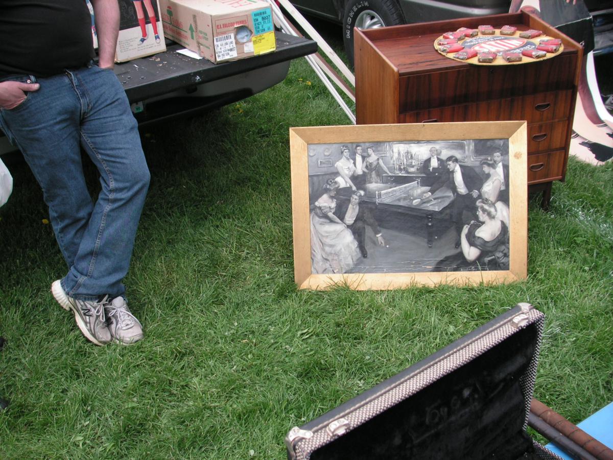 comments: Just came across your Antique of the Week from last August, the ping pong oil painting by Pitney. I bought this painting (not the print) on eBay in 2012 for about $2700. As a ping pong historian I recognized the image immediately, and there was heavy competition for it among fellow collectors on eBay. Quite interesting to see your photos and to learn it was once sitting on the grass at Brimfield! I am the author of Ping Pong Fever---the Madness That Swept 1902 America.I'm still wondering why the oil painting was created. I would think an illustrator would normally just make a pen and ink drawing. Do you have any thoughts on this? I can understand that the artist would like to make an extra profit by selling an oil painting. But then how was it converted into a magazine