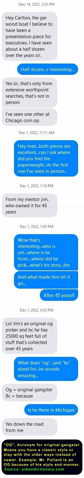 …To appreciate the significance of this paperweight, you should understand that quality figural works of pre 1930 inboard powerboats hardly