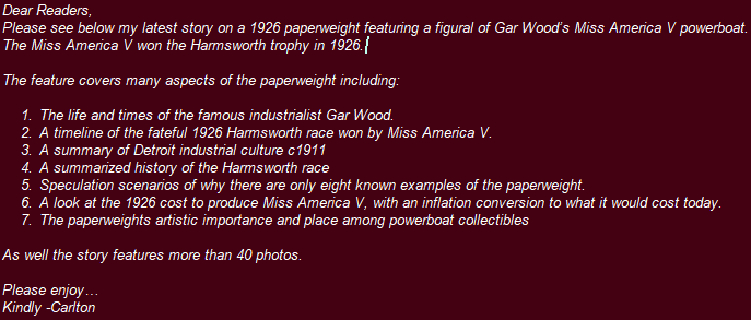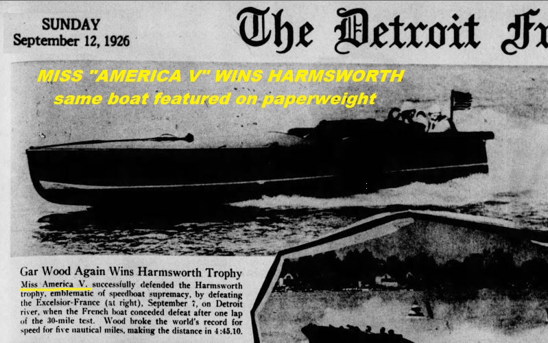 known paperweight of a Gar Wood boat