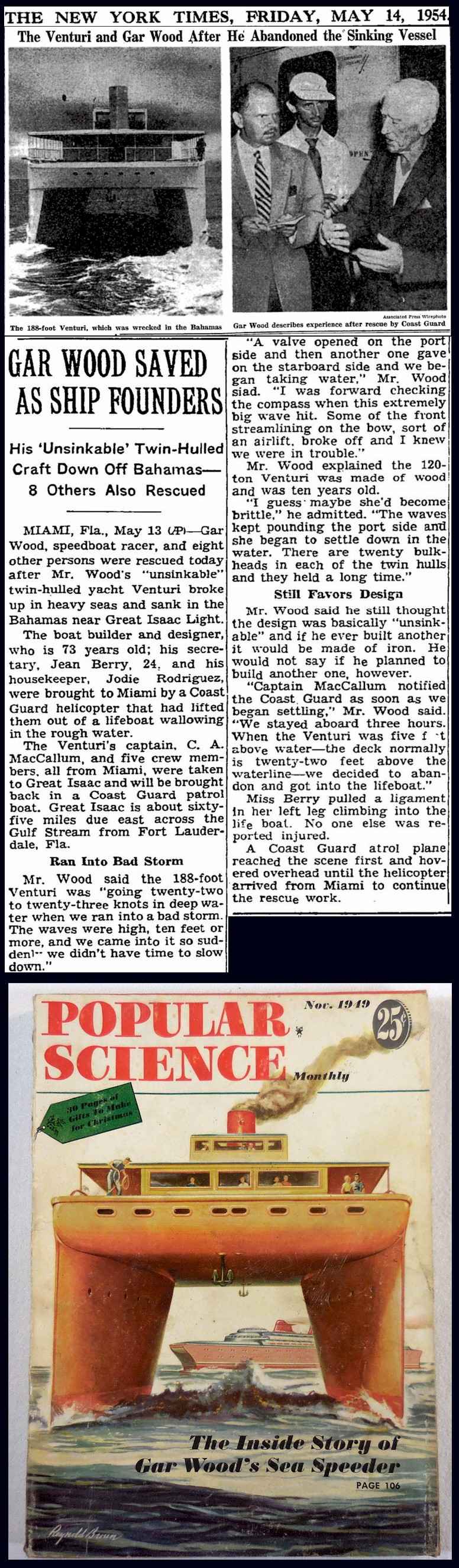 so-called "unsinkable" boat Venturi sank in rough waters off the Bahamas…Then he died seventeen years later…Kind of remarkable near death experiences for someone that regularly took his life in his