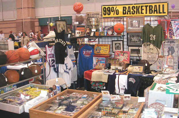 Reizes, from Mesa, AZ. Price: rim and net $250.00, ball $250.00 . Hank was sharing a booth with John F. Parker of 99% Basketball from Chelsea, VT. Hank is an interesting person in that he specializes in vintage basketball material, and is now selling off his collection. Good to know specialists, had never met one for