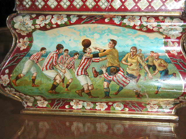 . This tin was my only purchase at the convention. My primary interest is American sports antiques. However, this tin made it to the gotta have it level, as it's the nicest sports tin I've ever seen. There's a little story to it. My friend John Buonaguidi had an example of this tin, that he'd gotten out of a Leland's auction for like $700.00-$800.00 . Then it got stolen. He was sick about it. When I spotted it, Glenn was asking $450.00, but quoted me $400.00. I wanted it, but it was the same old story…if I found something later I couldn't live without, I didn't want to end up $400.00 short. Same old poker game. I offered $350.00, but Glenn wouldn't come off. So I ended up pulling the trigger before somebody else got it. It was just too nice and rare to pass up I thought.