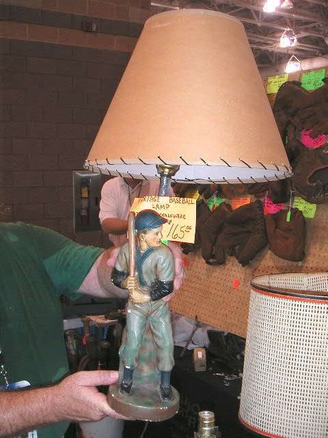 Next was a lamp with a 1930's baseball batter figure made of plaster, Offered by Pat Armstrong of Hawkeye Baseball Cards, from Burlington, IA, figure 14" tall, price: $165.00