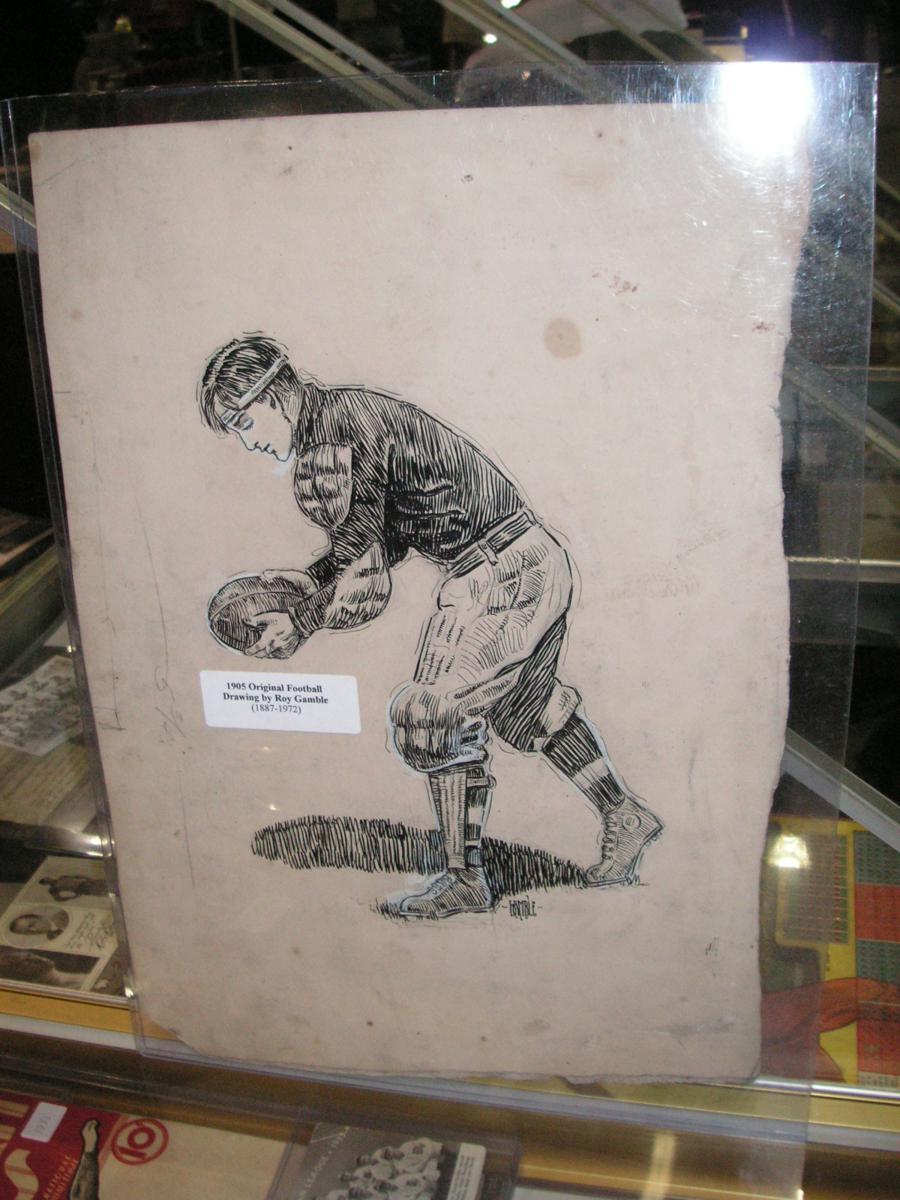 were two pen and ink drawings of football players by Roy Gamble 1887-1972,