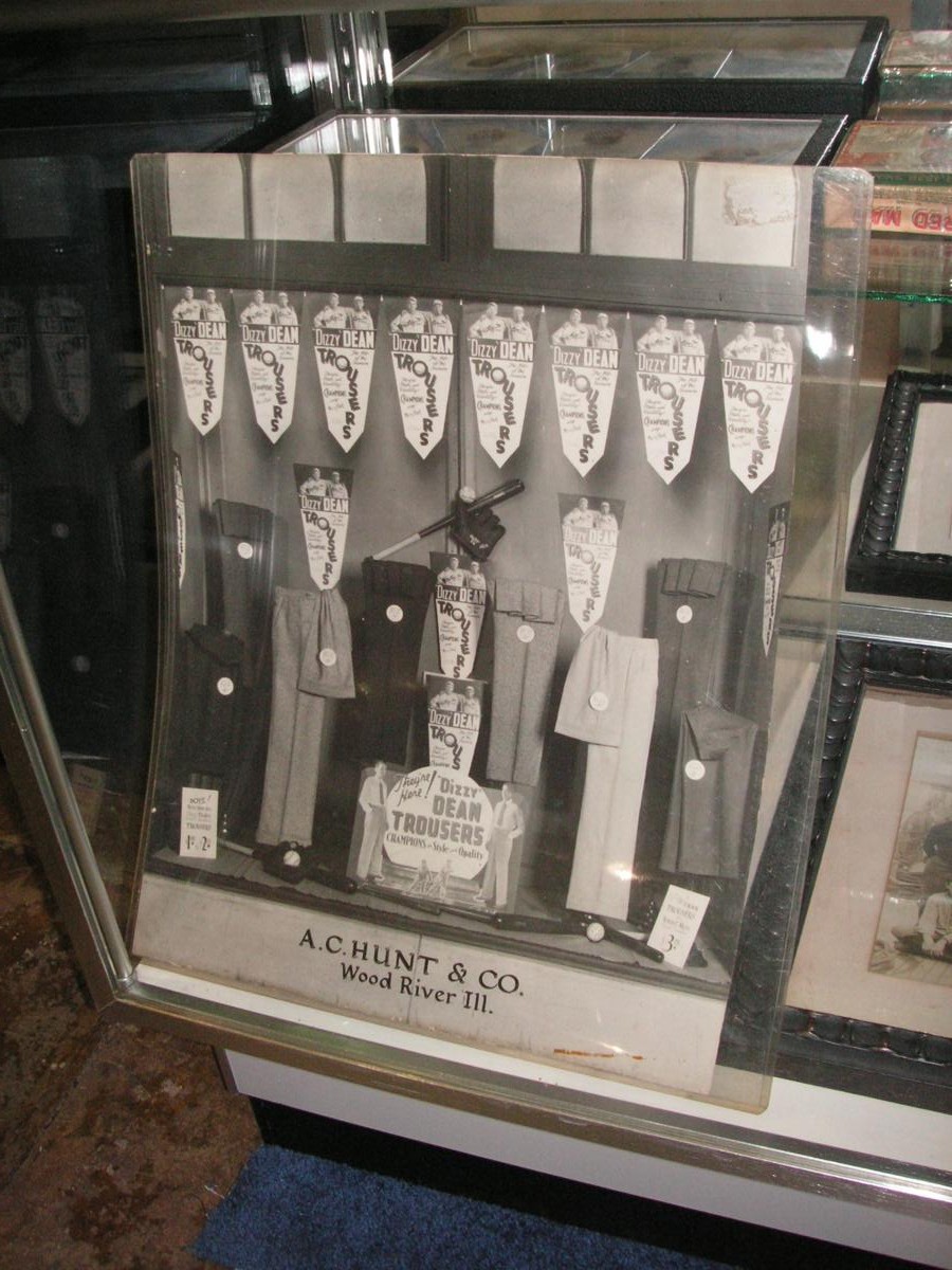 with small advertising posters for Dizzy Dean Trousers. The posters were