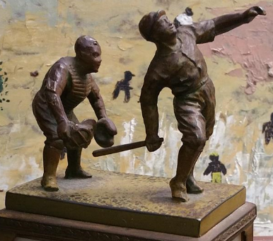 fantastic little 5 1/2" tall white metal baseball statue