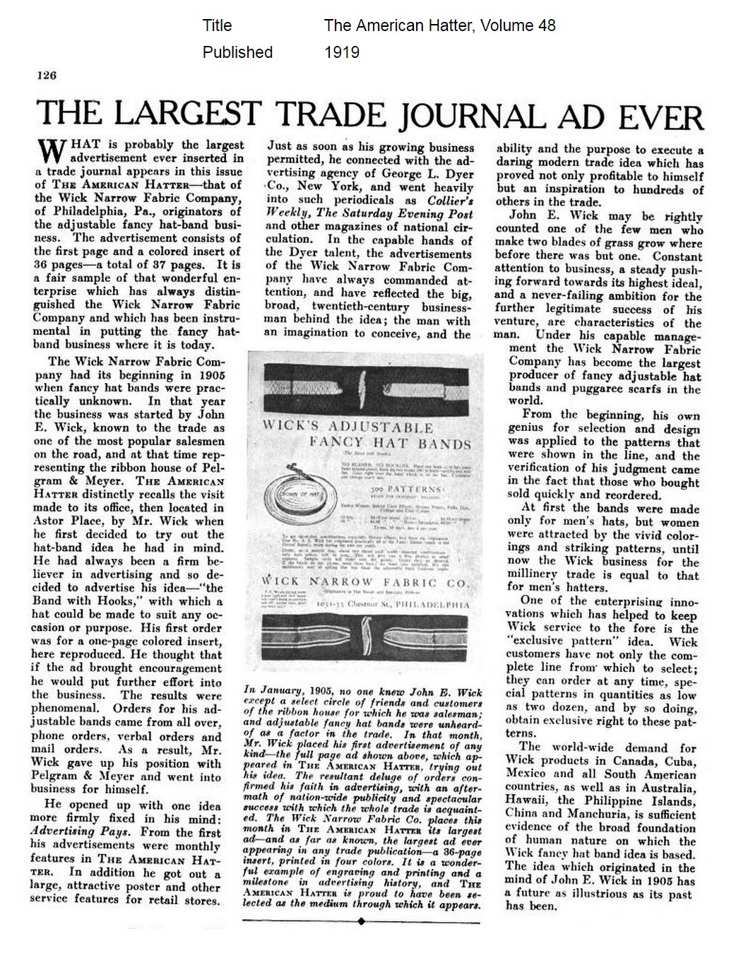 1919 American Hatter trade journal...From the feature we learn