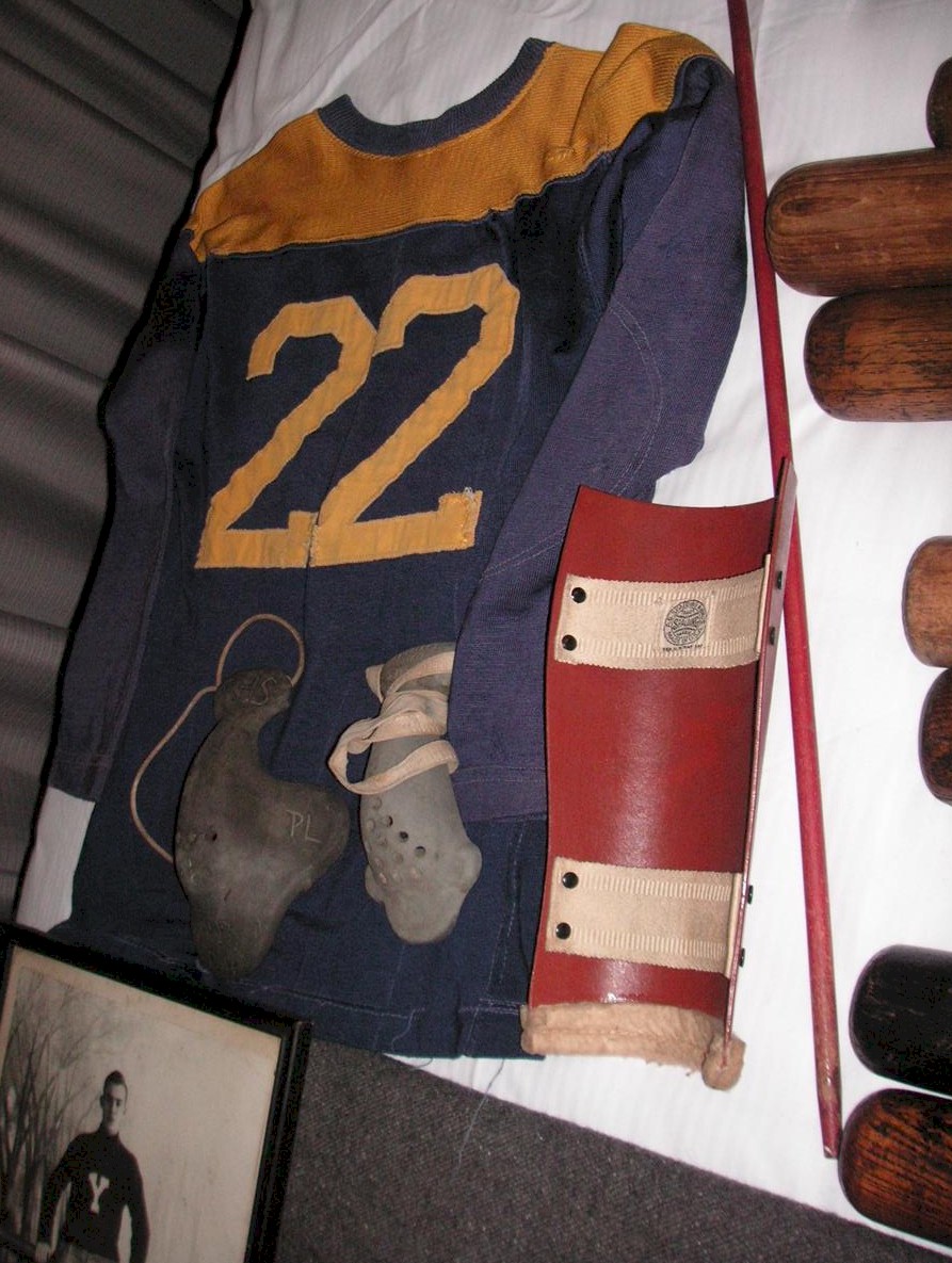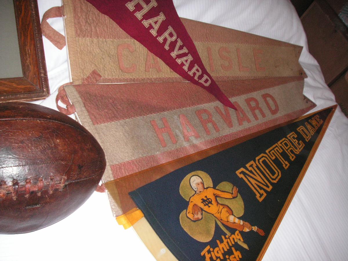 football helmets...a Princeton and a dog ear...and a Spalding wagon tongue