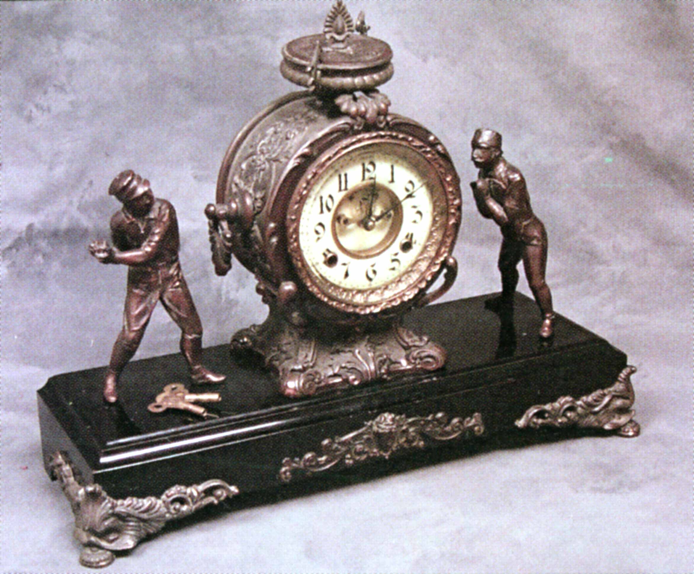 documentation. I’ve also read auction descriptions; again good, but nothing new. Without documentation we’re left to speculate on who and what is represented. Today we’ll look at the general consensus on this clock, along with recent research I’ve done for this article, plus my own personal insight.
