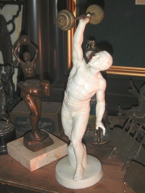 the barbell in his hand. Speaking of the barbell, it's bronze