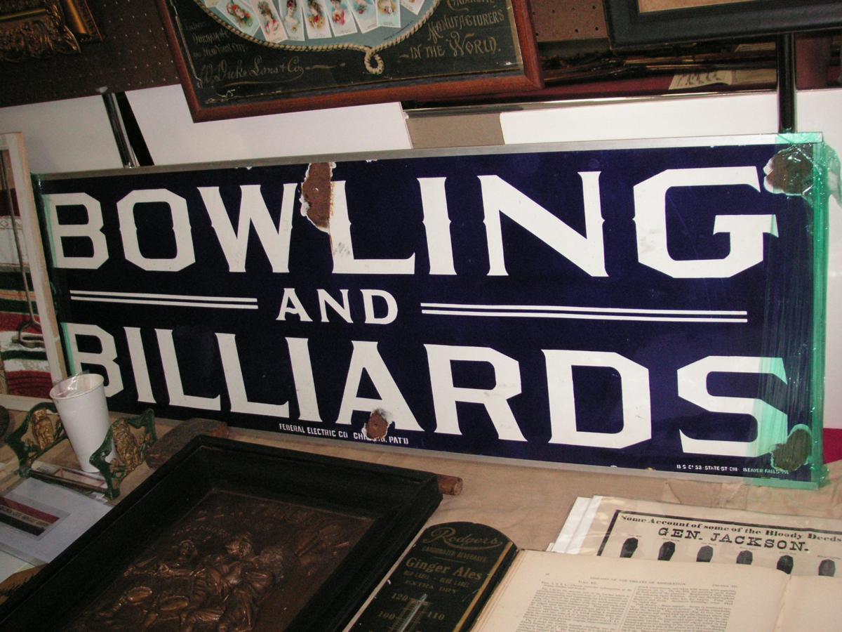 trigger! A lot of both Bowling and Billiards were played in Europe in the 19th and early 20th century….But this sign in pure 100% American, prominently marked Federal Electric Co. Chicago