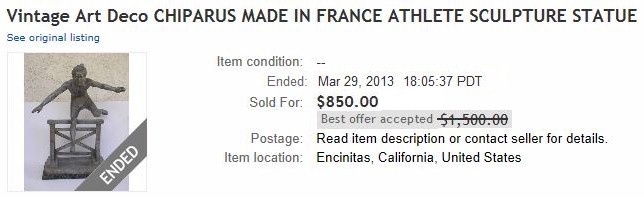 his c1920 19 inch tall statue of a hurdler was sculpted by Demetre