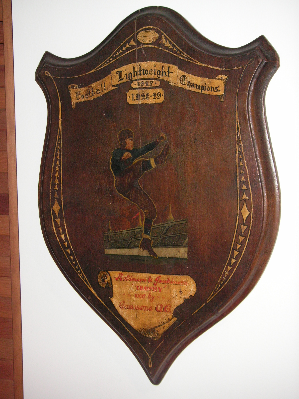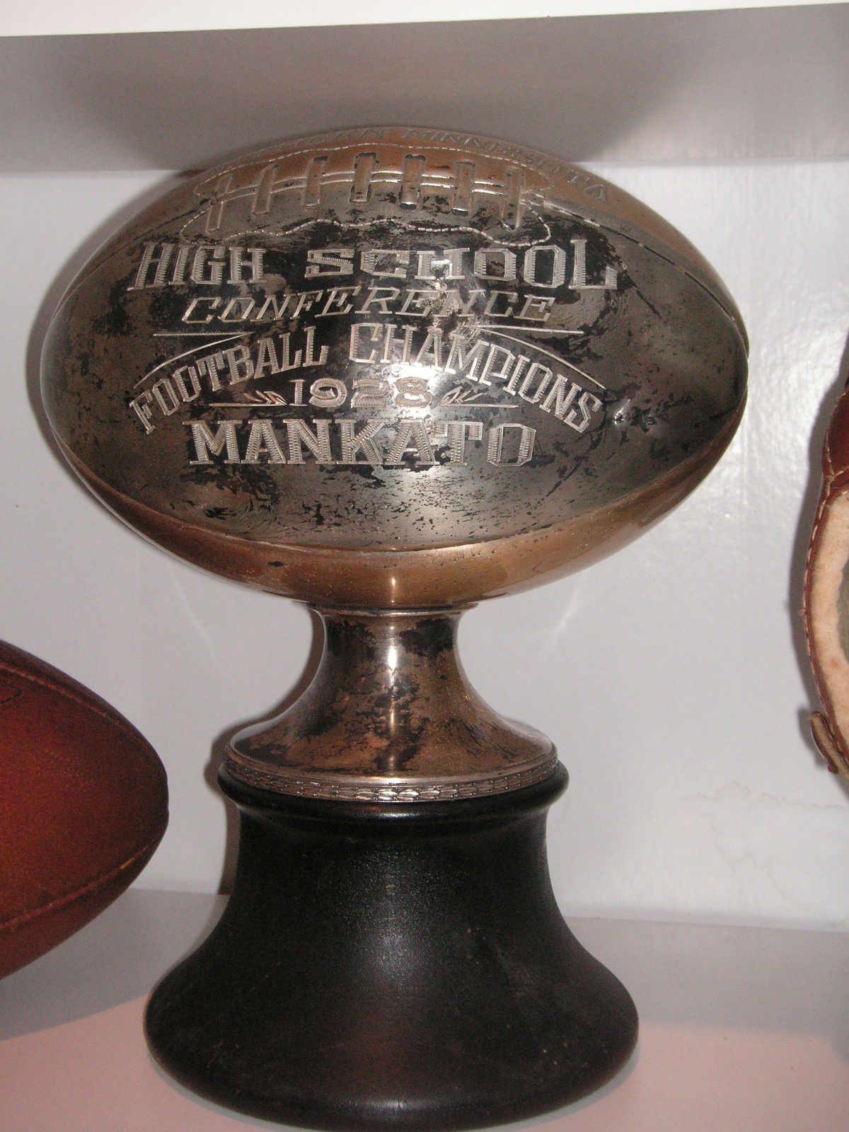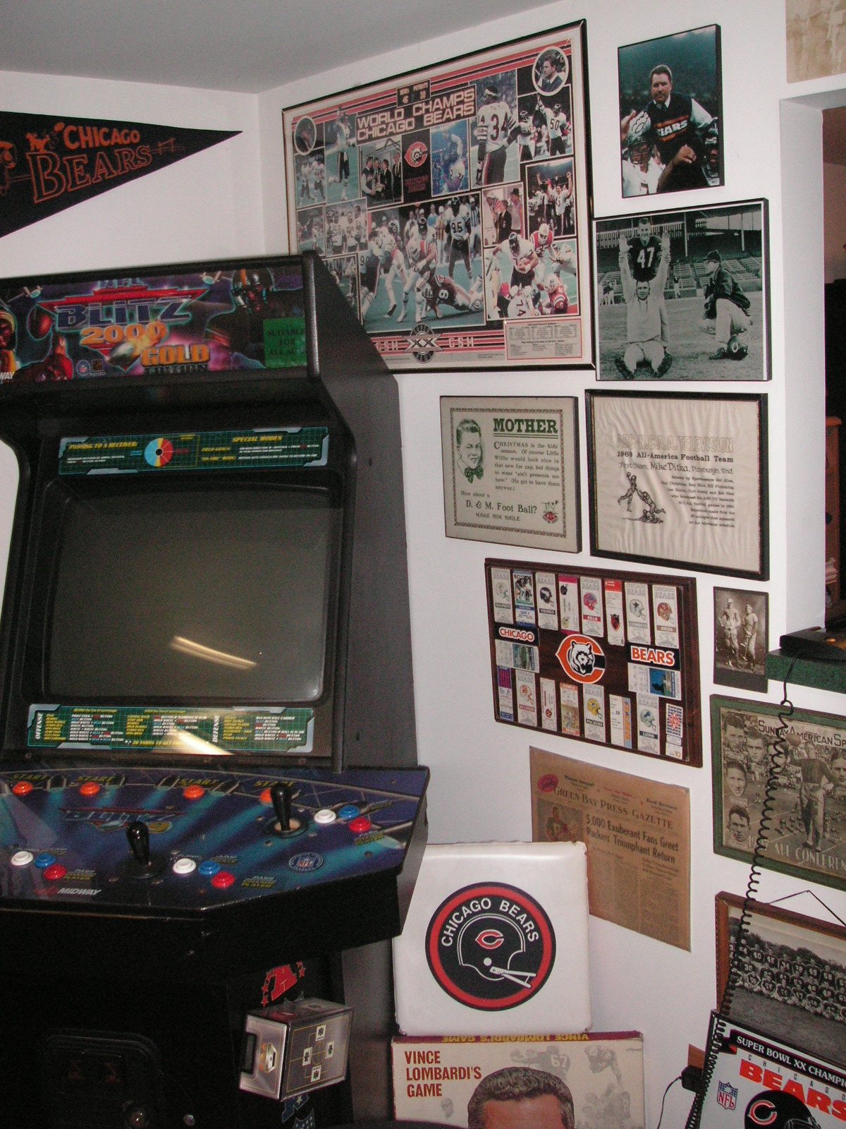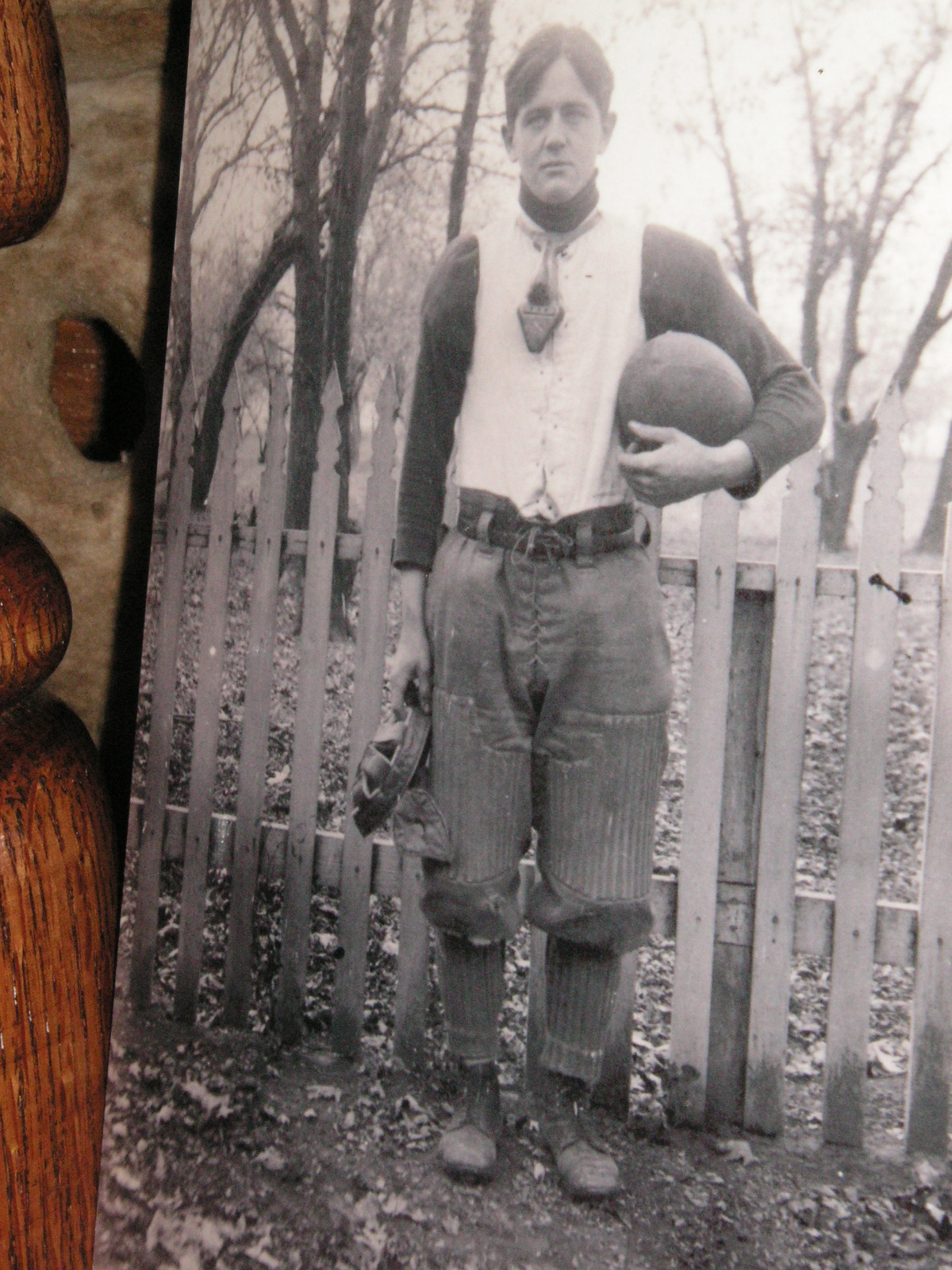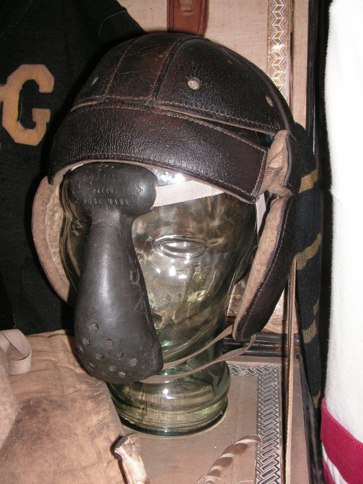 "I've been collecting vintage football items for about 13 years. I started by just wanting 1 leather football helmet. Loving the game of football so much as a player and coach, I was intrigued with the roots of the game. I searched every antique shop I came to with no luck for over a year. My parents found 2 old 1940's leather helmets at an antique shop in Wisconsin and bought them for me for Christmas 13 years ago and that was the start of my obsession. I enjoy having a nice assortment of items that span the decades the game has been played. I often wish I could go back and talk to the men who used to