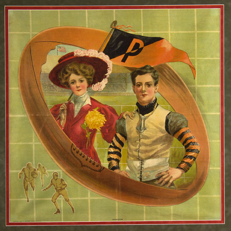 c1908, 23" x 23" Framed cloth pillow cover with Princeton football