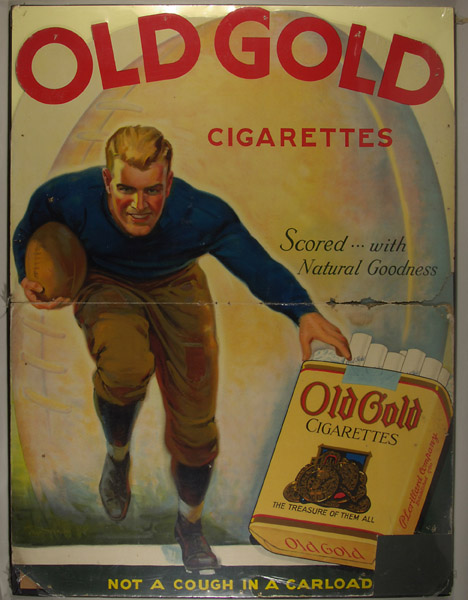 Gold Cigarettes football cardboard advertising sign,