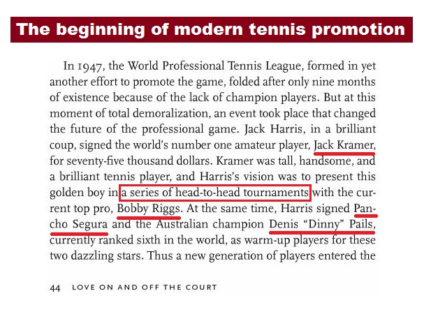Later I ascertained there was no Saturday February 21st in 1947…but later learned there was in 1948…and later I learned a lot more about the series in a 2009 book about one of the participants Pancho Segura called “Little Pancho”: The Life of Tennis Legend Pancho Segura, by Caroline Seebohm…according to what I read the series went on for a few years I believe…
